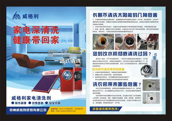 家電清洗專家洗多多提醒廣大市民,洗衣機長期使用,*易滋生細菌,嚴重的還可使家人感染婦科疾病、皮膚病等,尤其嚴重威脅著兒童的身體健康。在洗衣機的使用過程尤其是高溫天氣時,清理洗衣機是十分重要的。其他的季節(jié),我們建議每隔兩三個月給洗衣機*清洗除垢消毒。www.teamo-jv.com.cn詳情請咨詢:0371-63396295 63396297